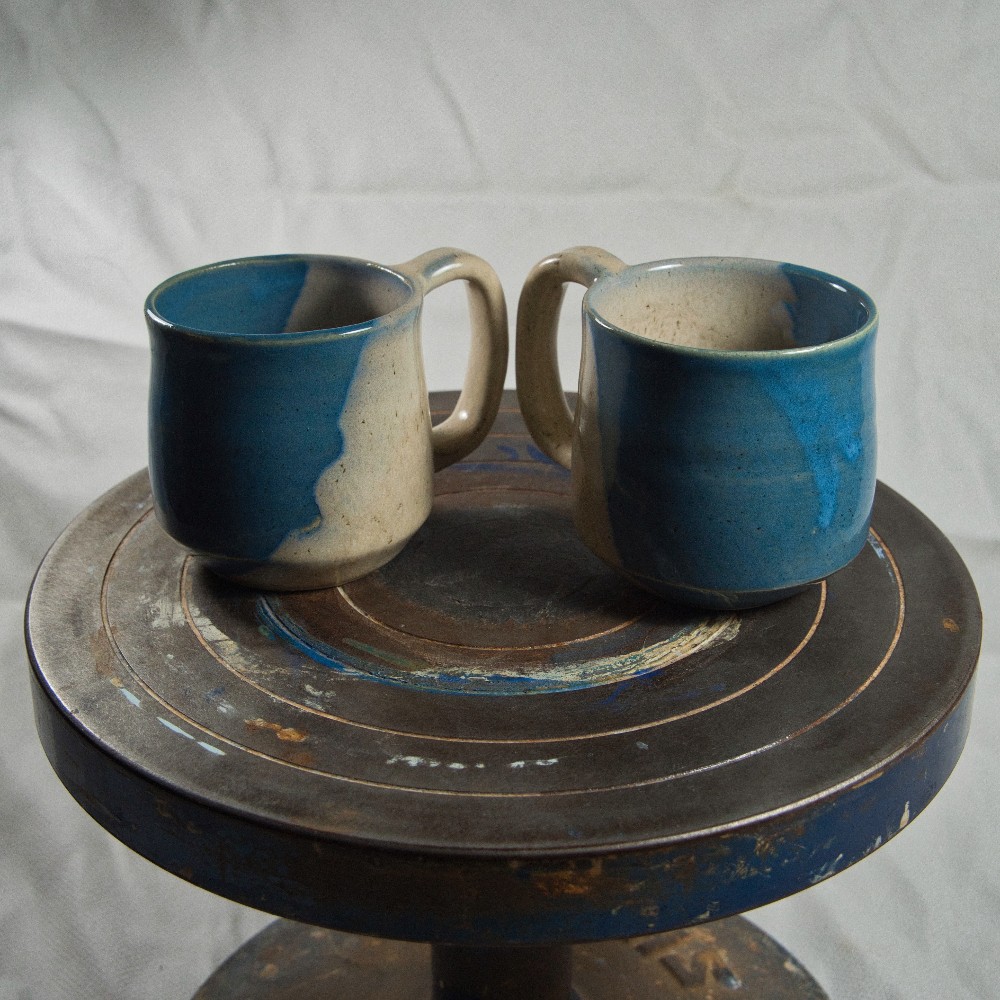 Blue and cream small ceramic mug.