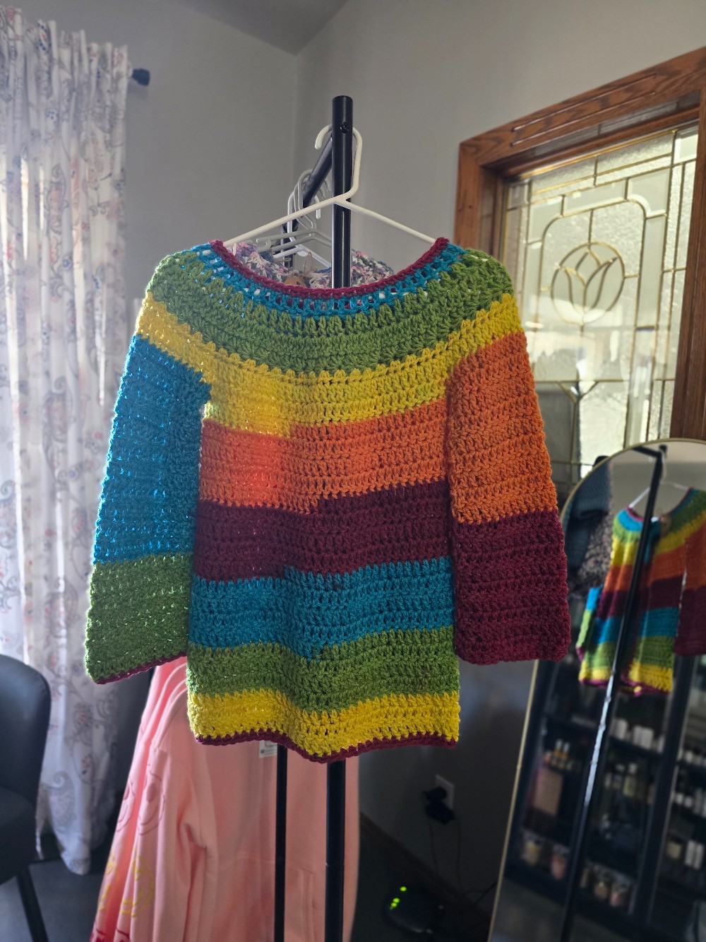 Hand crocheted with love for the ones you love! This one of a kind crocheted sweater is perfect for the autumn weather.