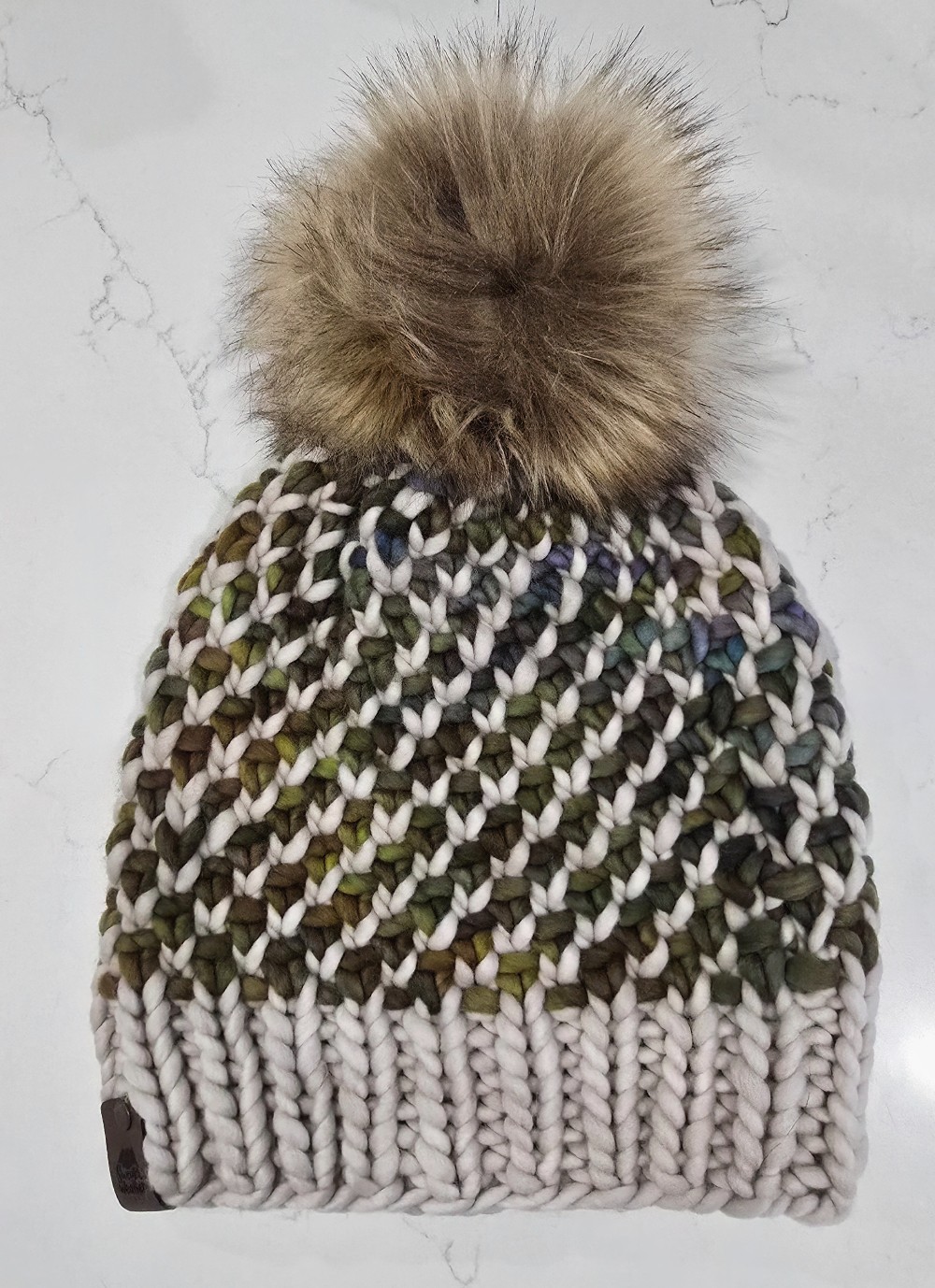 Merino wool is the best quality in warmth and moisture wicking! Handmade with love, each of these hats has its own unique look and colour blend.