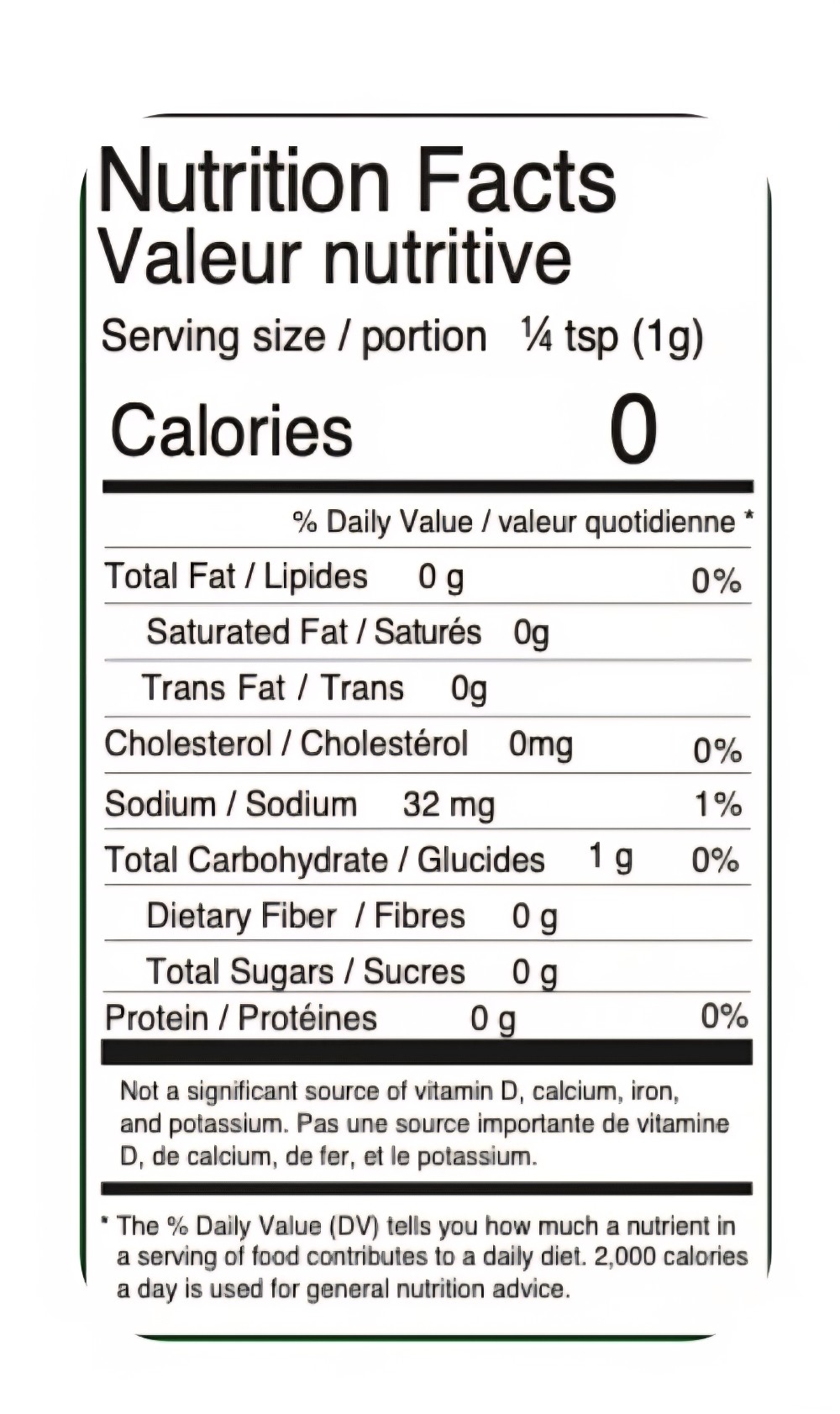 Ingrédients: Oignon émincé, poudre d’oignon, ail granulé, persil, levure nutritionnelle, poudre de tomate, poivron rouge, sel de mer, ciboulette.